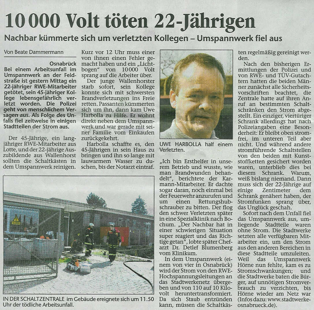 NOZ Beitrag (02.04.2004) zu dem Unfall als JPG DOWNLOAD (rechte Maustaste - "Ziel speichern unter"), sowie als direkter LINK zur NOZ Seite (öffnet sich im neuen Fenster - als LogIn für das NOZ Archiv könnt Ihr homaer mit dem Passwort runde nutzen).